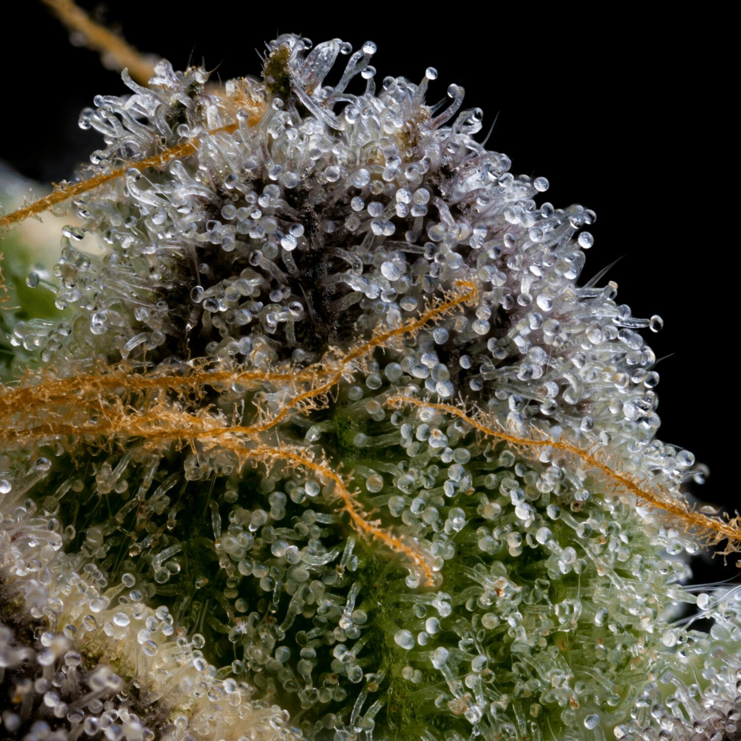 Trichome head size, neck brittleness, and resin texture are largely genetic.